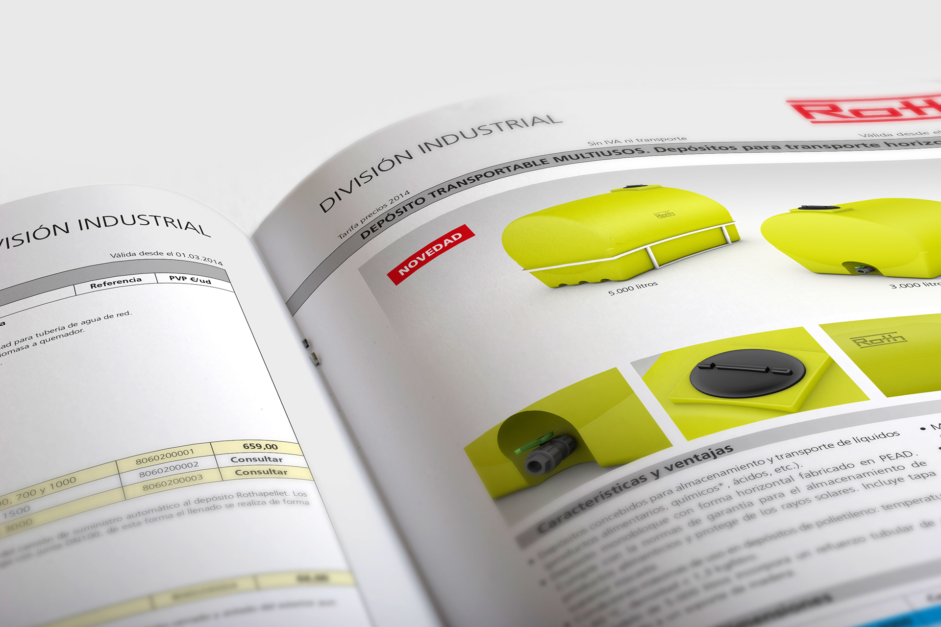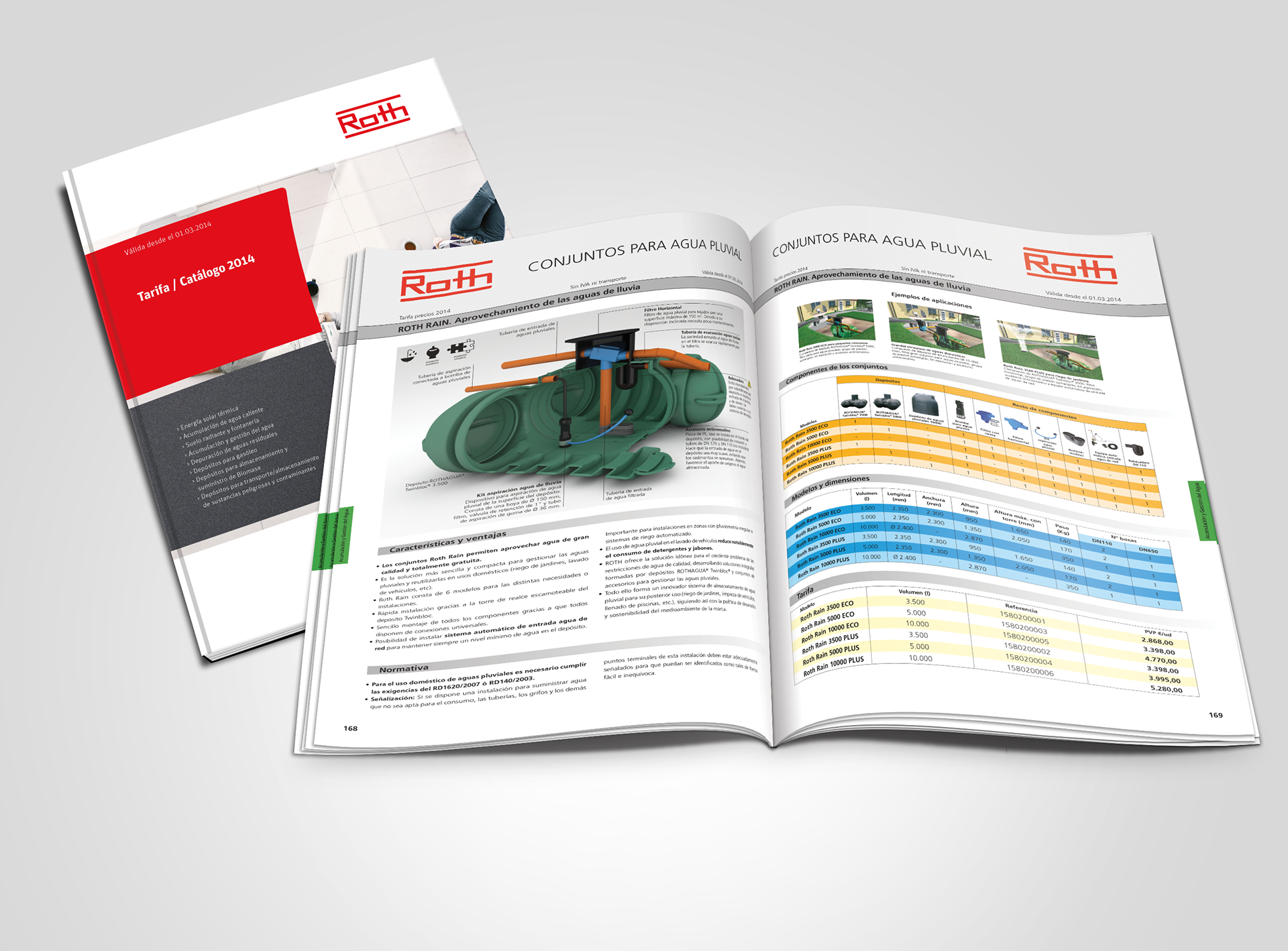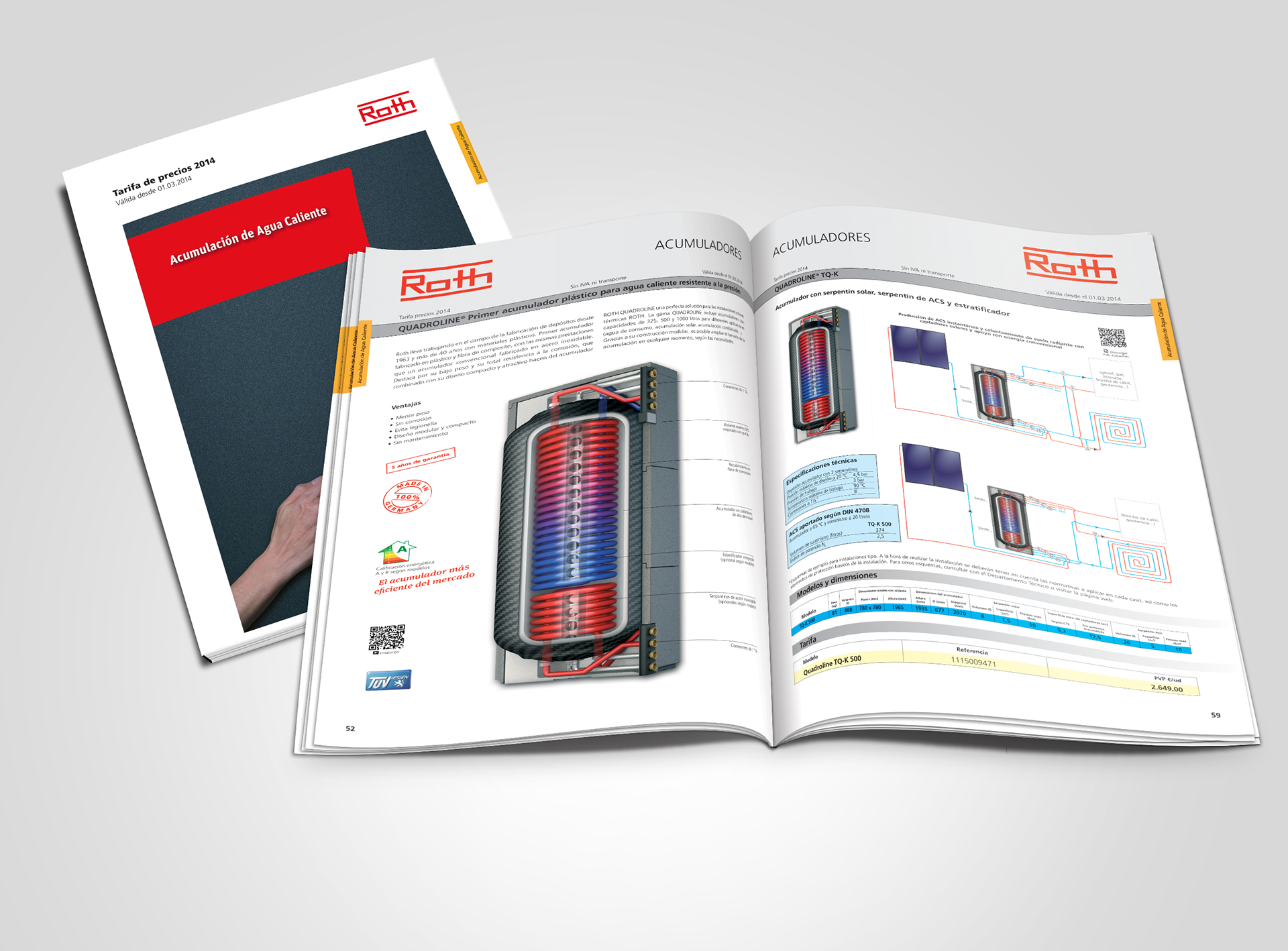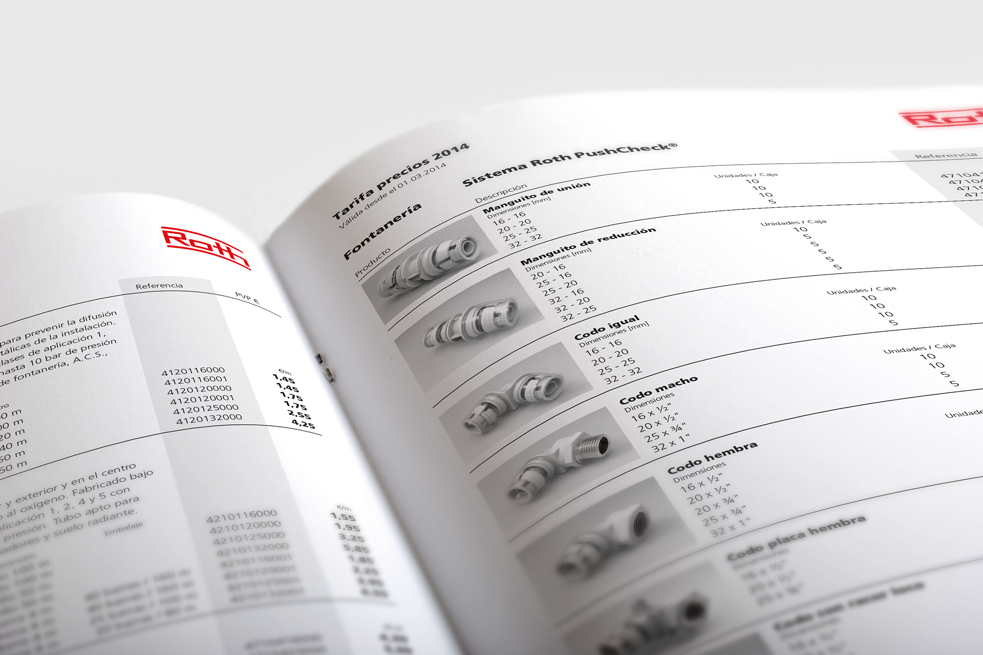 Tarifa Catálogo anual para la filial española de multinacional alemana Roth (264 páginas).